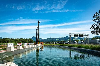 - Grundwasserabsenkung und Versickerung am Bauplatz mittels Versickerungsbecken mit vorgeschalteten Absetzbecken