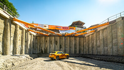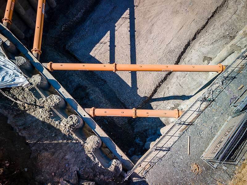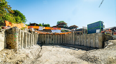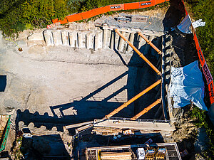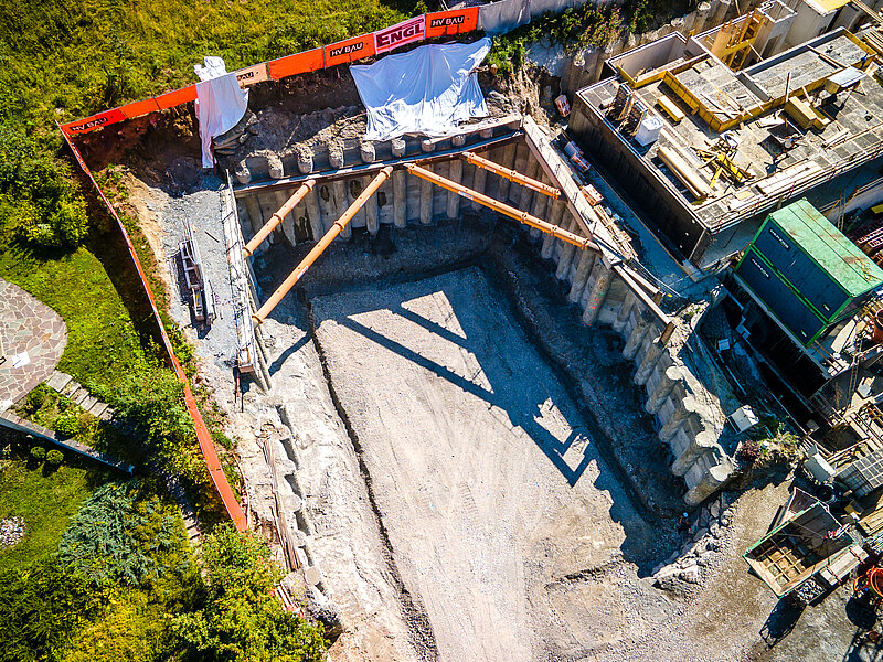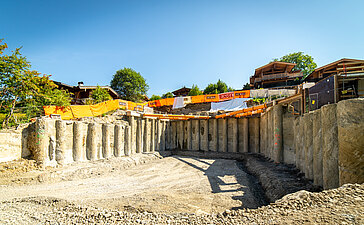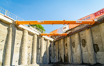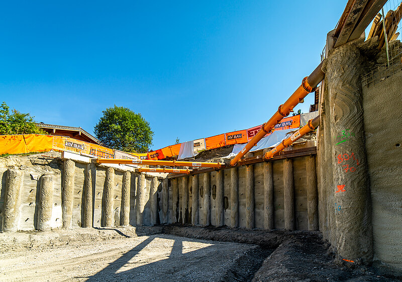 - Abgesteifte- frei eingespannte Bohrpfahlwand Durchmesser 90cm Länge bis zu 14m