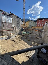 Im Zuge der Arbeiten erfolgte die Herstellung von Bohrpfahlwänden und Unterfangungen mittels Düsenstrahlverfahren zur Baugrubenstabilisierung. Insgesamt kamen rund 53 Großbohrpfähle, 100 Düsenstrahlsäulen sowie ca. 35 To-Aussteifungen zur Ausführung.