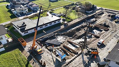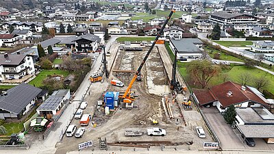 Beim Bauvorhaben WA Mooswinkel in Vomp übernahm die Engl GmbH die vollständige Herstellung der Baugrubensicherung sowie der Wasserhaltungsmaßnahmen. Auftraggeber war die Ing. Hans Bodner Baugesellschaft m.b.H. & Co. KG., Bauherr die Gemeinnützige Hauptgenossenschaft des Siedlerbundes regGenmbH.