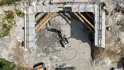Durch die abgestimmte Kombination der Sicherungs- und Gründungsmaßnahmen konnte eine dauerhaft standsichere und erschütterungsarme Bauausführung gewährleistet werden – bei gleichzeitig maximaler Schonung der umliegenden Bebauung.