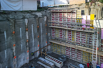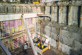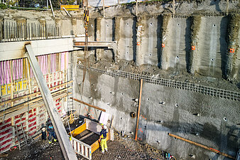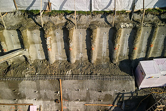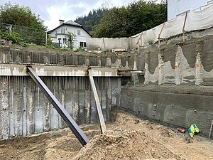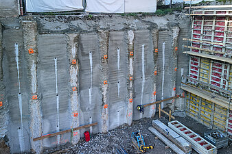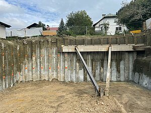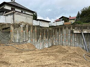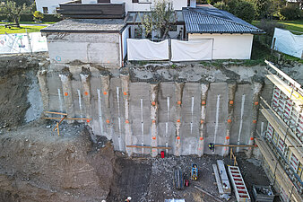 - Abgesteifte-rückverankerte Bohrpfahlwand Durchmesser 60cm + 40cm Länge bis zu 14m