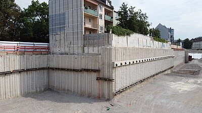 - Überschnittene Pfahlwand DN 900 1-fach rückverankert