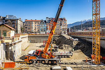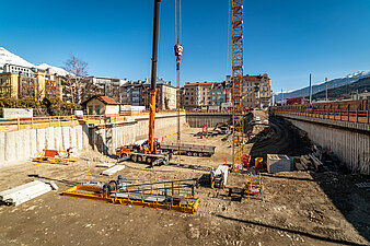 - Aushub bis 11m Tiefe insgesamt 45000m³
